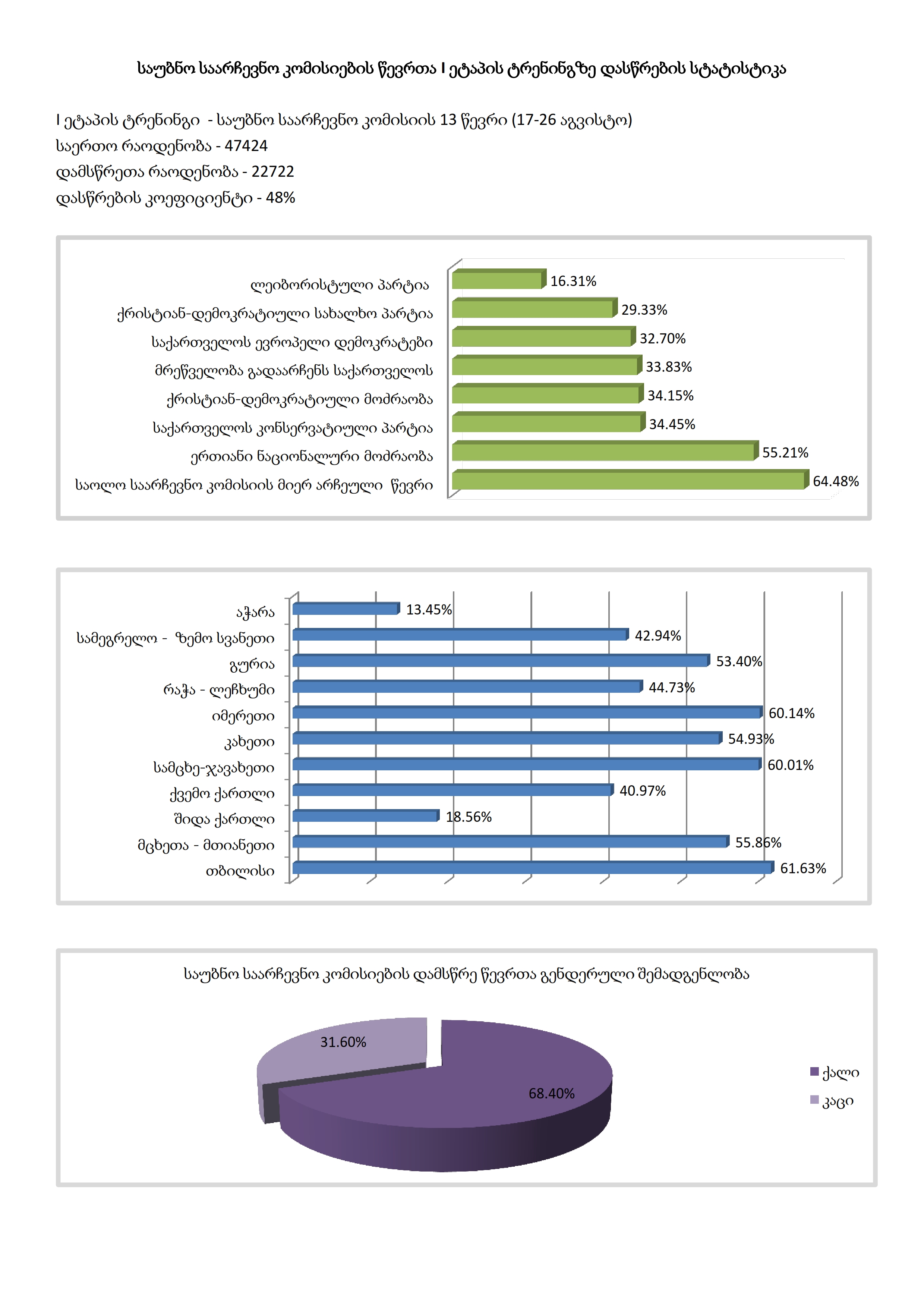 საუბნო საარჩევნო კომისიის წევრთა ტრენინგის სტატისტიკა (I ეტაპი) 2012 წლის 1 ოქტომბრის საპარლამენტო არჩევნებისთვის