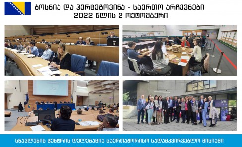 At the current stage, in the period from September 30 to October 2, the representatives of the Training Centre visited the election administration of Bosnia and Herzegovina. The mentioned visit is part of the continuous cooperation program, which envisages the support of the election administration of Bosnia and Herzegovina in the direction of the creation of the Training Centre and implementation-development of election training programs within the framework of sharing the experience of the Georgian Training Center. Within the framework of the Council of Europe project, the delegation of the Election Administration of Bosnia and Herzegovina visited the Election Administration and Training Center of Georgia in the first stage.
