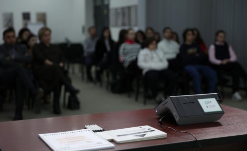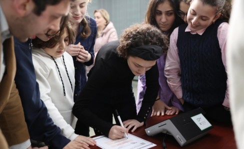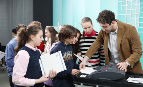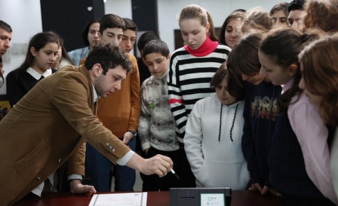 The Central Election Commission (CEC) continues to hold meetings with young people to involve them in the electoral process. This time, the CEC hosted the students of the civic education club "Pluralism Polyphony" of Kutaisi Niko Nikoladze School-Gymnasium. Nino Kikalishvili and Tsotne Zabakhidze, trainers of the Electoral Systems Development, Reforms and Training Centre (Training Centre), informed young people on implemented activities of the election administration in terms of the introduction of electronic technologies in the electoral process and future plans. Participants discussed the issue of integrating electronic technologies into electoral processes based on the experience of the Georgian election administration and other countries. Additionally, students get familiarized with electronic electoral technologies in practice, including verification, voting, and vote-counting devices.