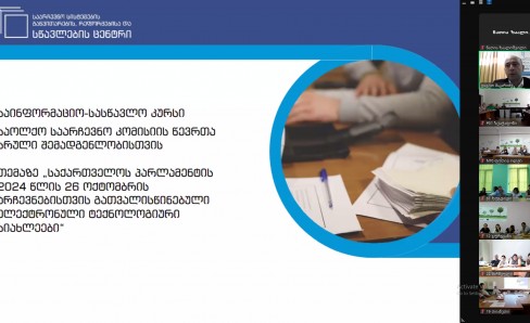 The informational-training program was held on September 12 with a hybrid methodology. Natia Zaalishvili, Director of the Training Centre, made opening remarks at the meeting held in remote format with DECs. She focused on the importance of professional training for DECs and noted that the developed program responds to the recommendations outlined in the reports of the observing organizations, considering the emphasis is given to adaptation of the members of the commissions to election novelties.