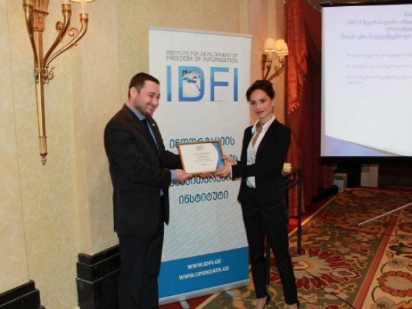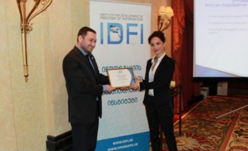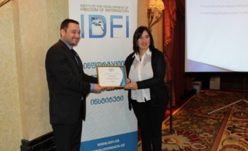 The Central Election Commission of Georgia and the Center for Electoral Systems Development, Reforms and Training received a special certificate, in recognition for ensuring 100 percent access to public information. Giorgi Kldiashvili, Director of the Institute for the Development of Freedom of Information (IDFI), has personally granted the award to Tamar Zhvania, CEC Chair, and to Natia Zaalishvili, Training Center Director.