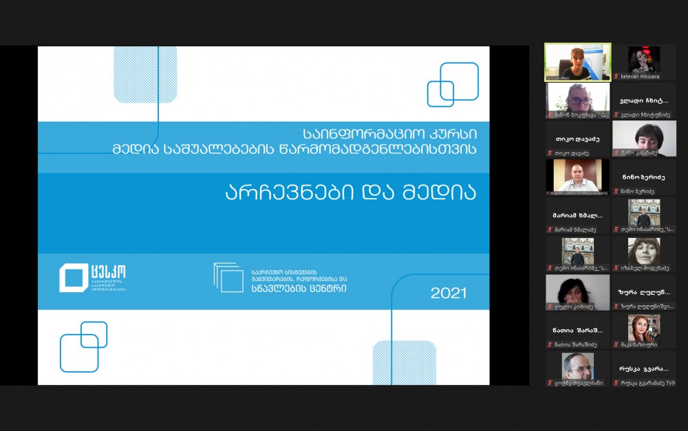 ცესკომ და სწავლების ცენტრმა რეგიონული მედია საშუალებების წარმომადგენლებთან საინფორმაციო შეხვედრა გამართა. ღონისძიება სწავლების ცენტრის დირექტორმა ნათია ზაალიშვილმა გახსნა, რომელმაც 2021 წლის 2 ოქტომბრის არჩევნების გამჭვირვალედ წარმართვის, ასევე სიძულვილის ენისგან თავისუფალი, უსაფრთხო საარჩევნო გარემოს უზრუნველსაყოფად მედიის როლის მნიშვნელობაზე გაამახვილა ყურადღება.