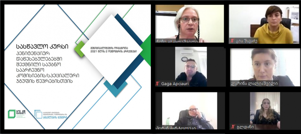 ცესკოს სწავლების ცენტრი სპეციალური პენიტენციური სამსახურის პენიტენციურ დაწესებულებებში მყოფი ამომრჩევლების მუნიციპალიტეტის ორგანოთა 2021 წლის 2 ოქტომბრის არჩევნებში მონაწილეობის უზრუნველყოფისა და მათი საყოველთაო საარჩევნო უფლების რეალიზების მიზნით, ახორციელებს საინფორმაციო - სასწავლო კურსს პენიტენციურ დაწესებულებებში შექმნილი საუბნო საარჩევნო კომისიების/სპეციალური ჯგუფების წევრებისთვის.