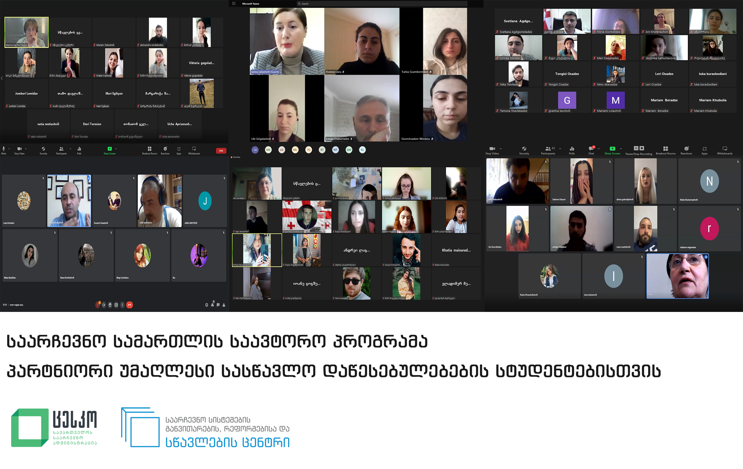 სწავლების ცენტრმა, პარტნიორ უნივერსიტეტებთან გაფორმებული ურთიერთთანამშრომლობის მემორანდუმის ფარგლებში, 2021-2022 სასწავლო წლის გაზაფხულის სემესტრში 9 უმაღლეს სასწავლებელში საარჩევნო სამართლის საავტორო პროგრამა განახორციელა.