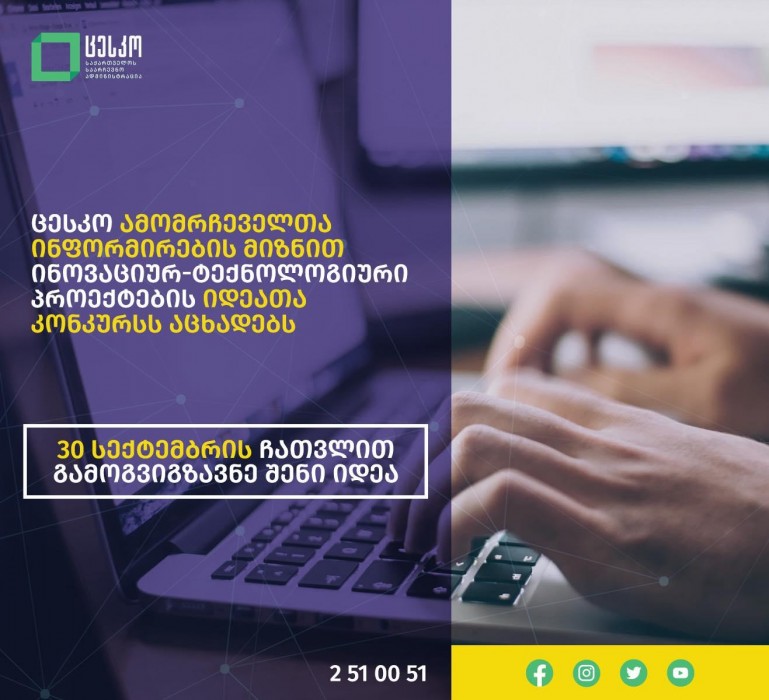 ცენტრალური საარჩევნო კომისია (ცესკო) ამომრჩეველთა ინფორმირების მიზნით ინოვაციურ-ტექნოლოგიური პროექტების იდეათა კონკურსს აცხადებს.