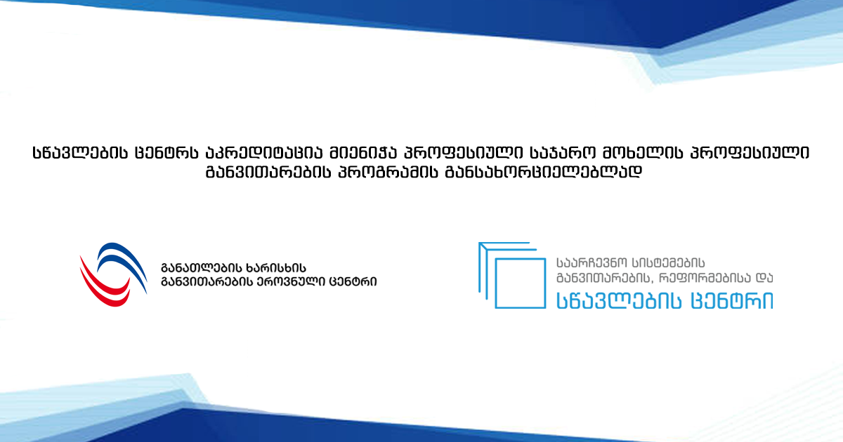 სსიპ - საარჩევნო სისტემების განვითარების, რეფორმებისა და სწავლების ცენტრის (სწავლების ცენტრი) მიერ შემუშავებულ პროფესიული საჯარო მოხელის პროფესიული განვითარების საბაზისო პროგრამას „პიროვნული და პროფესიული კომპეტენციების განვითარების კურსი“ აკრედიტაცია მიენიჭა.