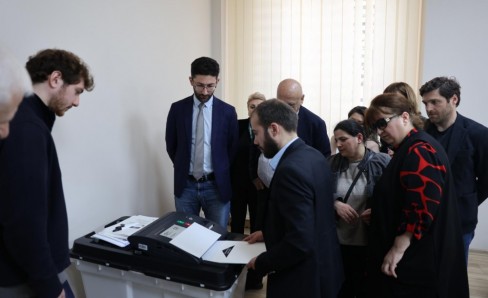 შეხვედრის ფარგლებში გაიმართა ხმის მთვლელი ელექტრონული აპარატის დემონსტრირებაც.