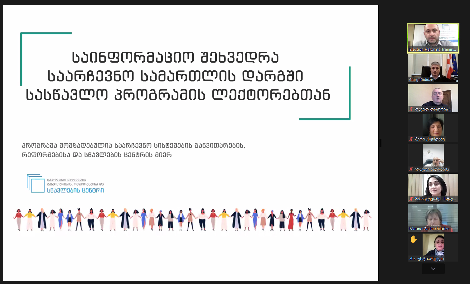 დეტალური ინსტრუქტაჟის ფორმატში სწავლების ცენტრის წარმომადგენლებმა ლექტორებს გააცნეს განახლებული სასწავლო მოდულები, პრაქტიკული სავარჯიშოები და სალექციო კურსის ჩასატარებლად შემუშავებული რესურსები. ყურადღება გამახვილდა არჩევნების მოდერნიზებასა და ელექტრონულ ტექნოლოგიურ სიახლეებზე, 2025 წლის გაზაფხულის სემესტრული სწავლება პარტნიორ უნივერსიტეტებში 17 თებერვლიდან დაიწყება.